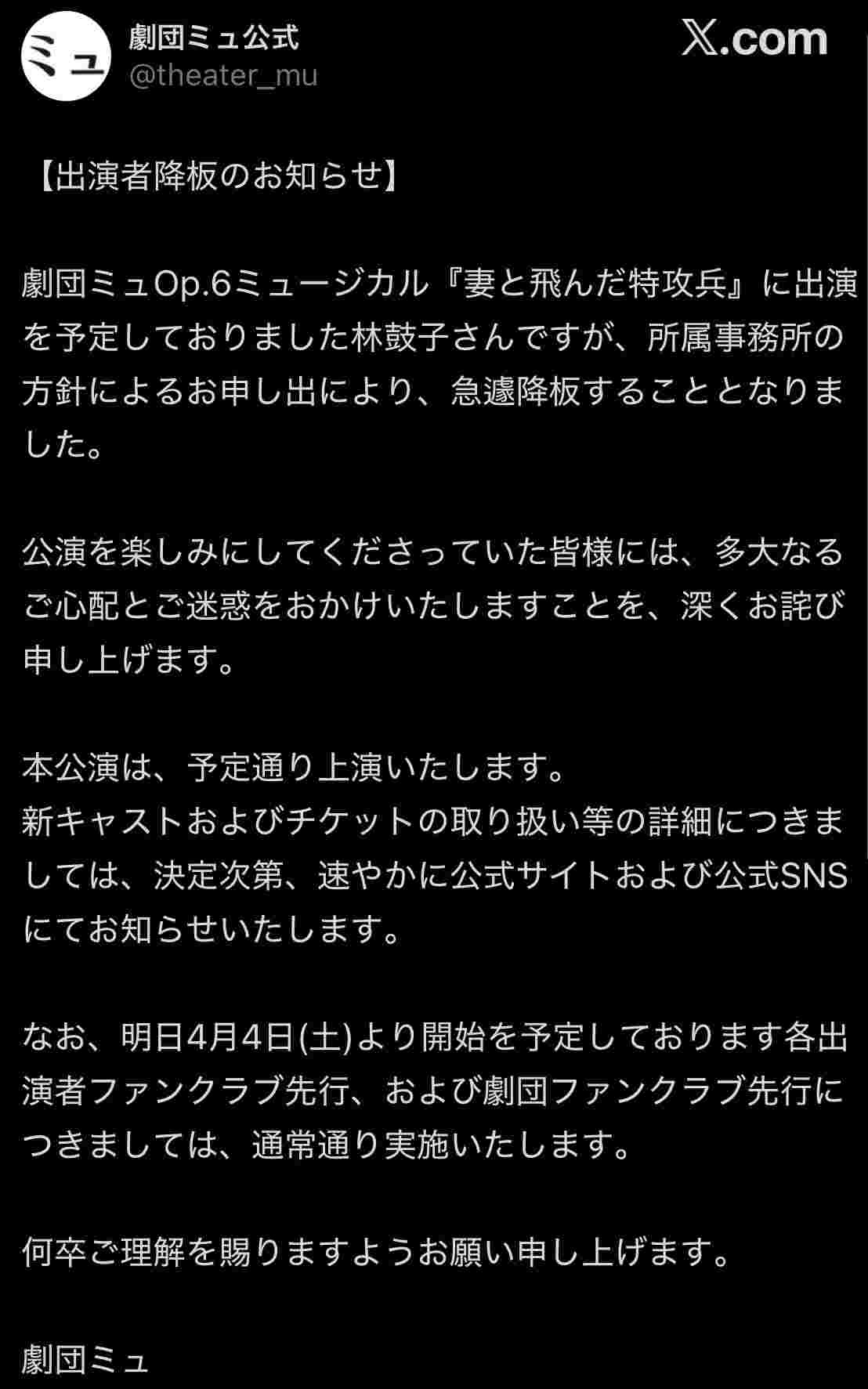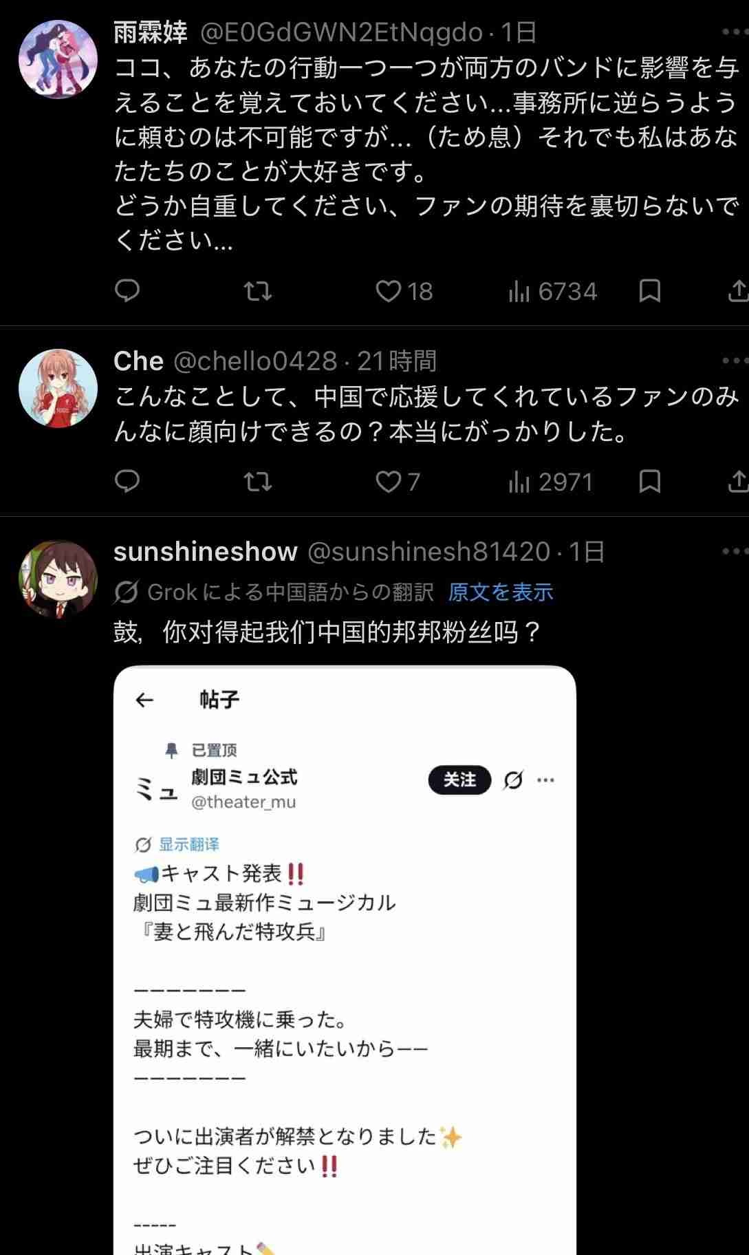 中国で人気あるのか降板したって事は舞台より声優業選んだんだろ