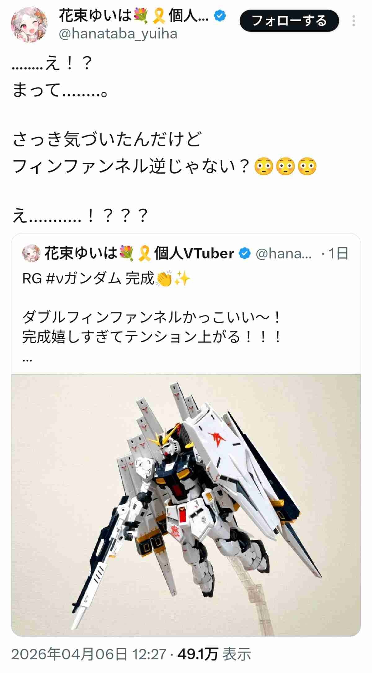【画像】ブイチューバーさん、ガンプラを完成させるも盛大に間違えてしまうwwweewww