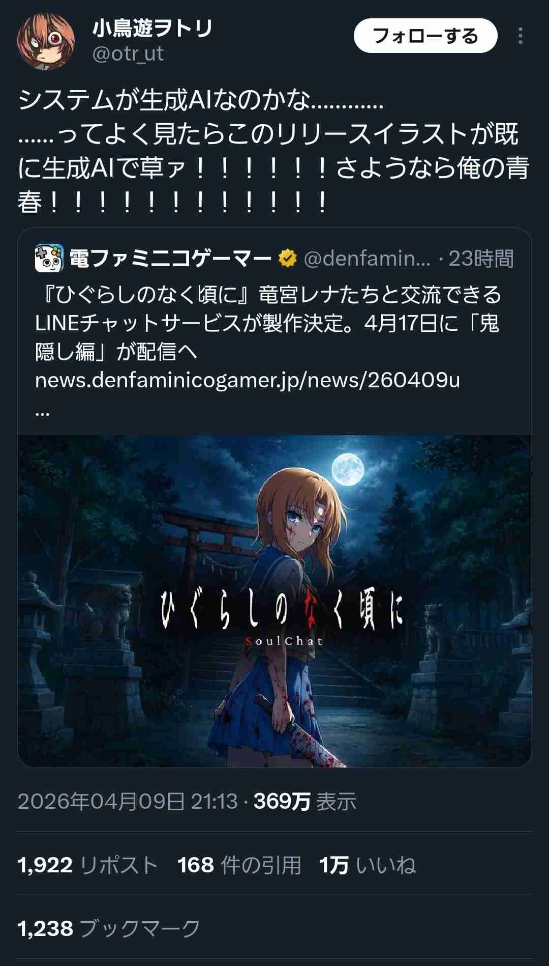 ひぐらし好きな奴って反AI多そう偏見だけど