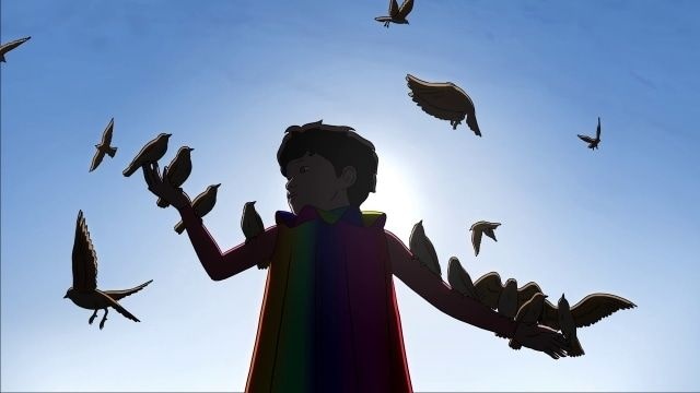 近未来を舞台に虹色スーツの少年と少女が織りなす、どこか懐かしく温かい物語を、鮮やかな色彩のアニメーションで独創的に表現したのは、本作が長編アニメーションデビューとなるウーゴ・ビアンヴニュ監督。事実ではなく“感覚としての真実”を最も美しく描き出せる手法であるとして2Dアニメーションを採用。「本作は大人と子どもが一緒に楽しめる作品であり、若い頃に心を動かされた冒険譚。“明日”ではなく、“明後日”を想像することへと導いてくれる、人間が自然と調和しながら生きる素朴な日常への回帰の物語」を目指したという。5年の歳月をかけて完成した本作は、想像力と希望、そして未来への責任を描いた、現代に響くヒューマニズムの物語として完成した。