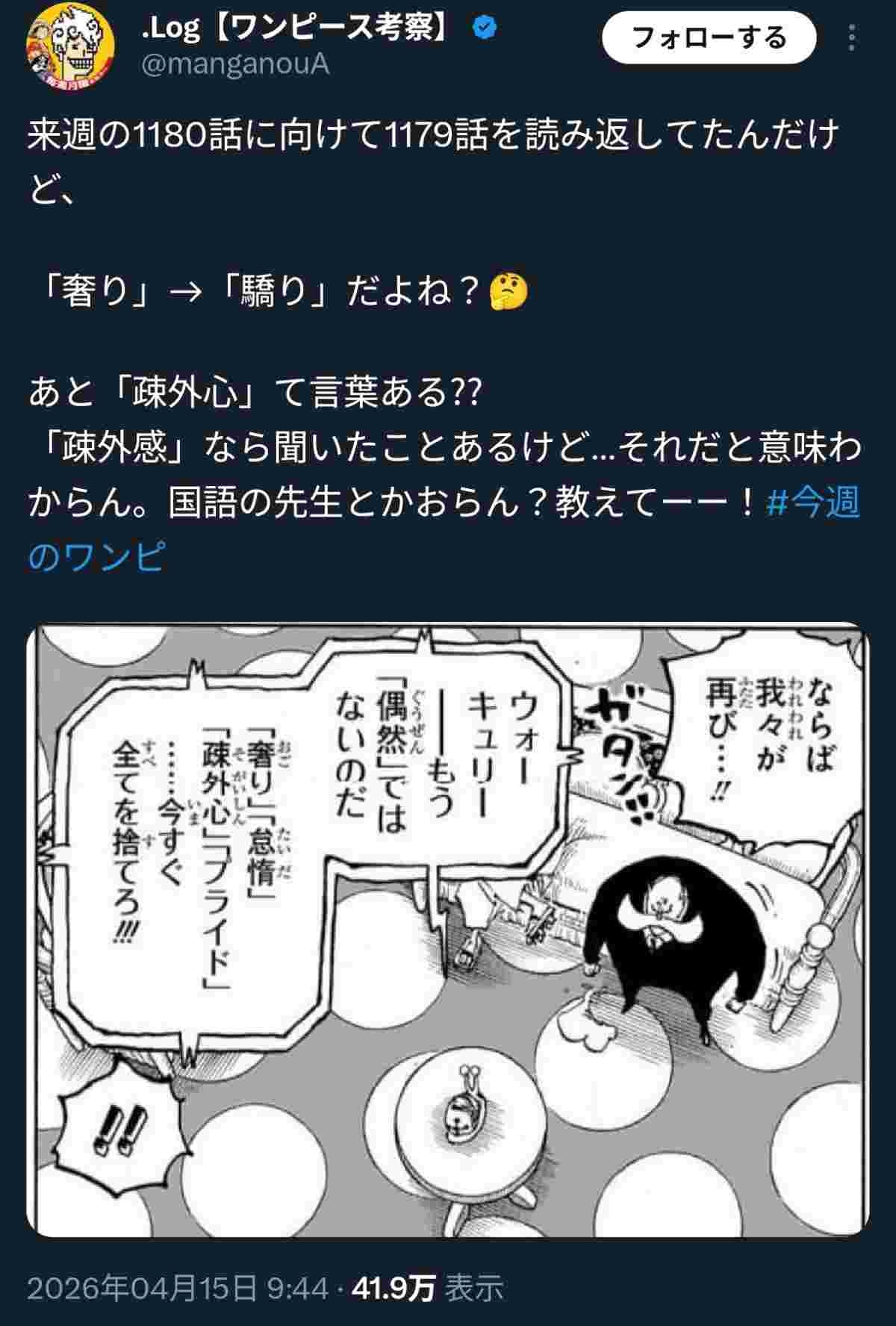 なんかワンピって意識の高い馬鹿って感じの漫画になっちゃったよね