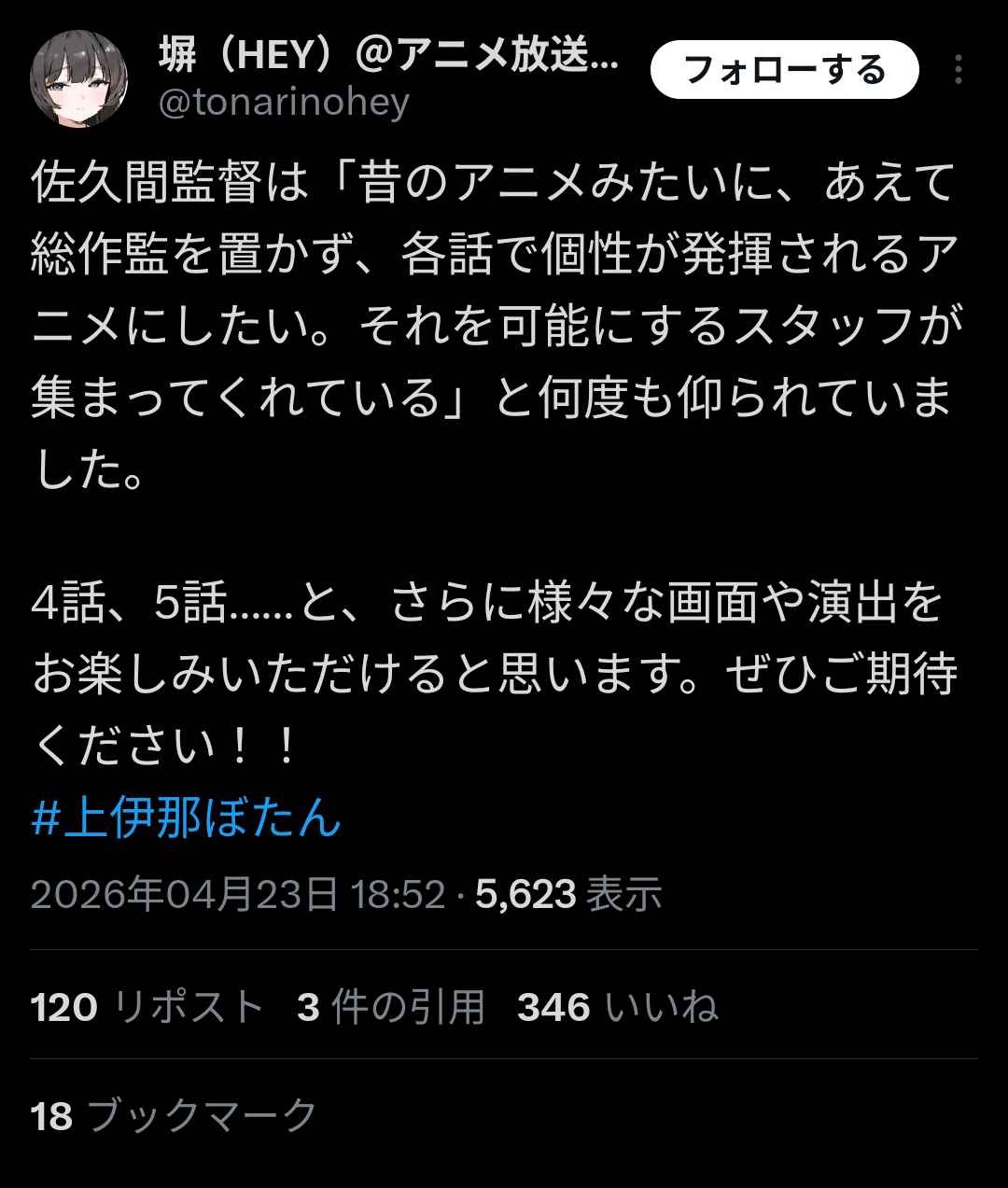 TVアニメって2話までは監督が直々に作って3話からは丸投げみたいな制作体制が多いよな