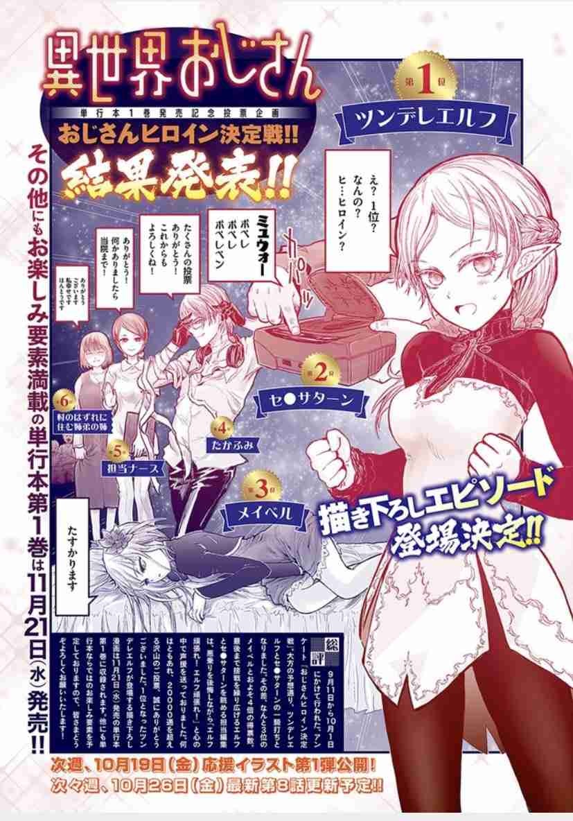 おじさんが目覚めて2度目の大晦日は、去年よりもにぎやかに。まだ見ぬ2019年に思いを馳せて──。藤宮の友人、沢江におじさんの秘密が明かされ、いつもの思い出鑑賞会に新たなメンバーが加わった。かと思いきや、韓流ドラマにコンテンツ力で敗北し、そうはならなかった…。一方異世界では、メイベルさんとの新たな旅が始まった 裏表紙