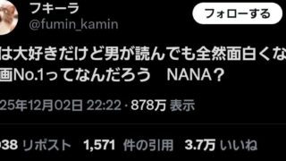 嫌儲 X「女は大好きだけど男が読んでも全然面白くない漫画No.1ってなんだろう。NANA?」3.7万