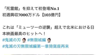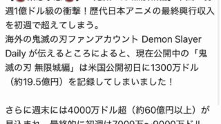嫌儲 鬼滅の刃、アメリカで3日で100億円超えの大ヒット!!!